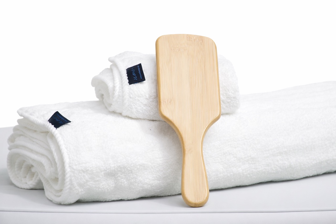 The bamboo brush by UMI Headspa combines natural materials with a caring effect for hair and scalp. The smooth bamboo pins gently massage the scalp, stimulate blood circulation, and help distribute the hair’s natural oils evenly throughout the hair.