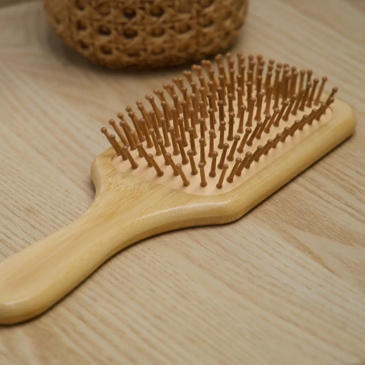 Unlike plastic brushes, bamboo is anti-static, eco-friendly, and sustainable. This brush reduces frizz and leaves the hair shiny and healthy — perfect for daily use or during a headspa treatment.
