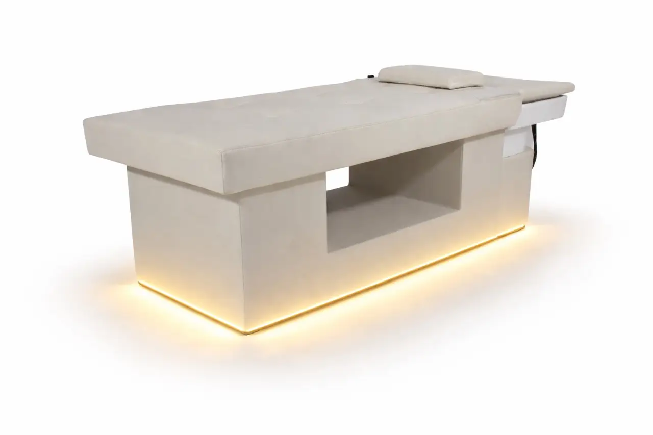 What truly makes this model unique is the motion-activated lighting underneath the bed. As soon as someone approaches the bed, the lighting is automatically activated. This creates a stylish and modern lighting experience that allows the treatment to begin even before the client takes a seat. The effect is subtle yet impressive and gives your salon a high-end appearance that clients will remember.