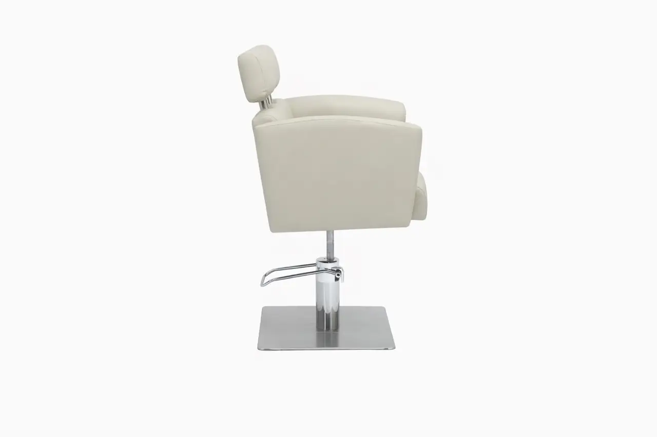 In addition to its aesthetic appeal, this chair is fully adapted for professional use. The hydraulic height adjustment makes it easy to adjust the working height to your posture and the specific treatment being performed. This allows you to work more ergonomically and reduces strain on the back and shoulders during long working days. This is especially important for hairdressers and stylists who carry out multiple treatments every day. The adjustment operates smoothly and in a controlled manner, allowing the position of the client to be changed without disturbing the calm of the treatment. In addition, the chair rotates 360 degrees, providing maximum freedom of movement around the client. This allows you to work comfortably from any angle, supporting your workflow and ensuring a pleasant and efficient way of working.