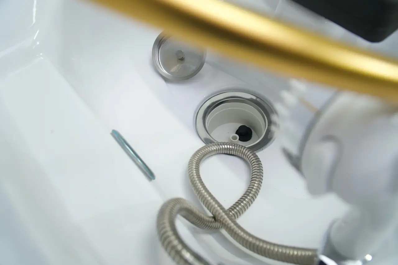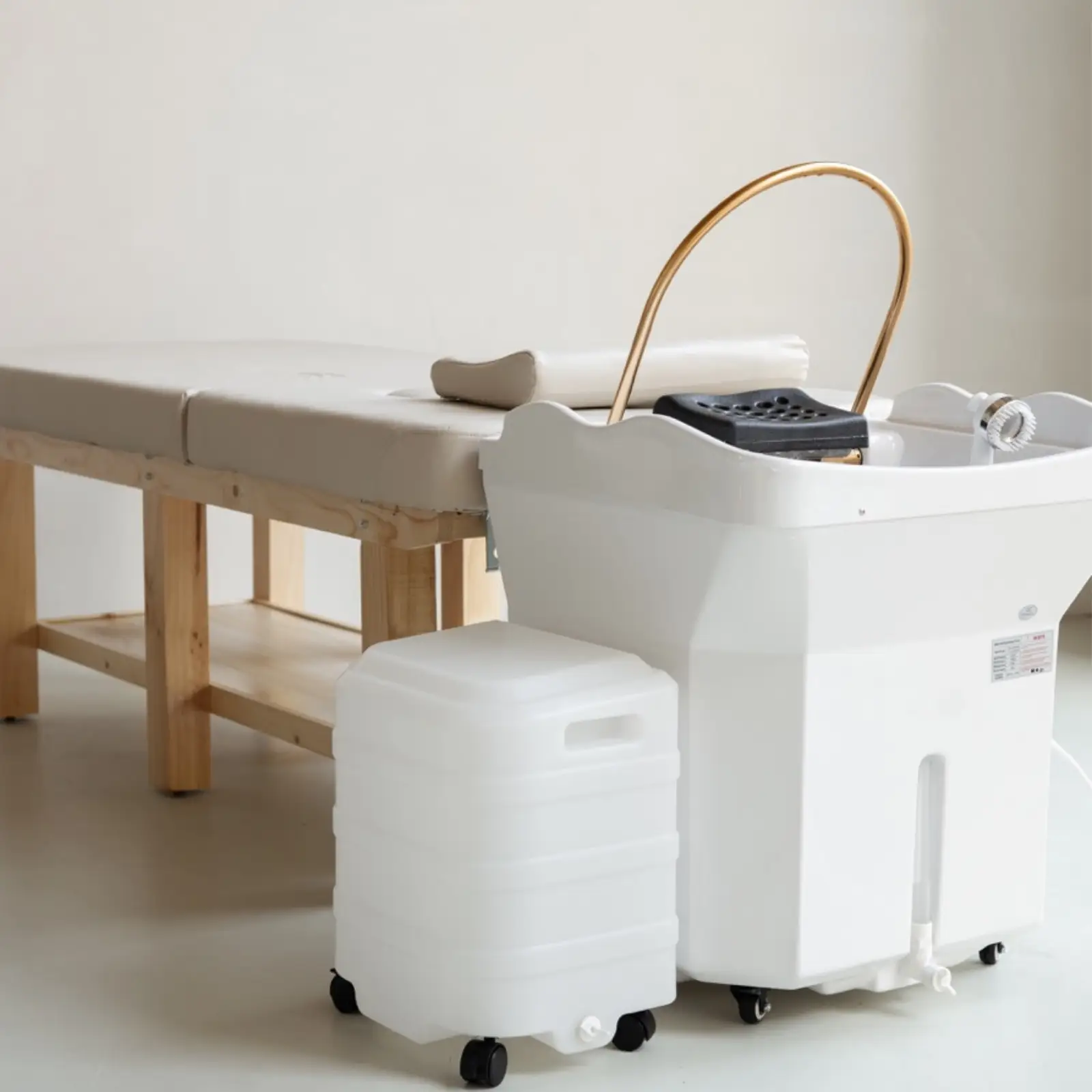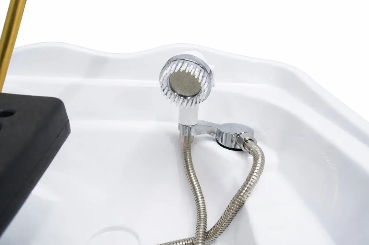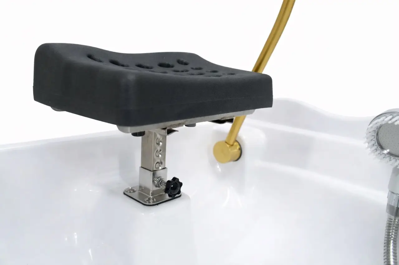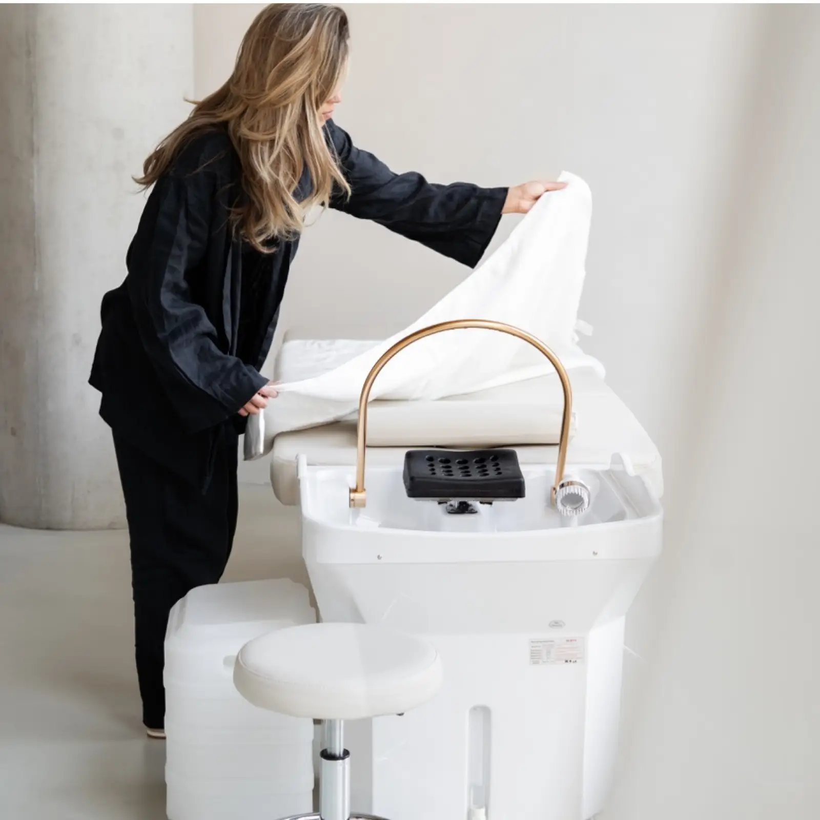 The Portable Headspa is compatible with approximately 95% of all treatment beds. The headrest is adjustable in height from 70 to 80 cm, allowing you to easily adapt the system to different bed types. The model is also well-suited for use with salon chairs or beauty beds, enabling you to expand your existing furniture with headspa functionality. The sink is equipped with integrated light therapy, enhancing a calming atmosphere during the treatment, without the need for extra plugs or loose cables.
