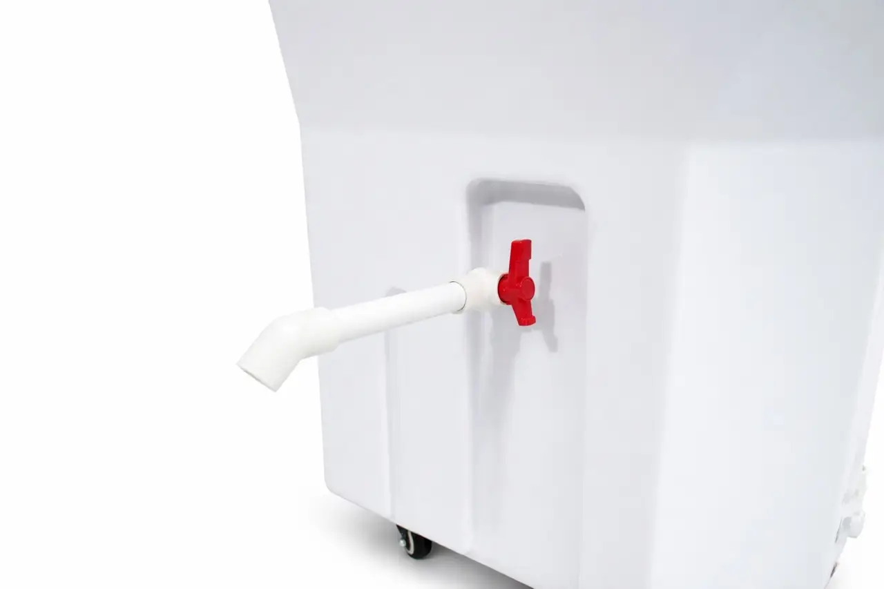 Filling the system has been deliberately kept simple. You simply let the water flow into the sink without any complicated procedures. During the treatment, the used water is directly drained into the included wastewater tank. This allows you to work cleanly and efficiently while maintaining maximum flexibility in your space. Despite its professional nature, the device is lightweight, weighing only 18 kg when empty. Thanks to the integrated wheels, you can easily move the system and store it conveniently after use. Ideal for salons with multifunctional treatment rooms or limited space.