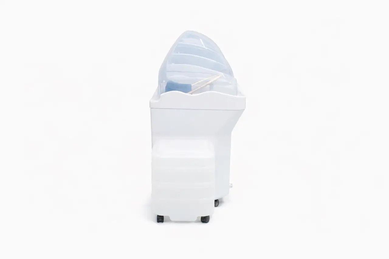 This portable Headspa unit is developed for salons and practitioners who want to start offering professional headspa treatments in a simple and accessible way. This model significantly lowers the technical barrier while still allowing you to provide your clients with a luxurious and relaxing treatment. The system combines ease of use, mobility, and professional functionality in one compact device, making headspa accessible for almost any salon. The simple installation is a major advantage: the device doesn’t need to be connected to a fixed water supply or drain and operates via a standard power outlet. This means you can start almost immediately without renovations or technical adjustments.