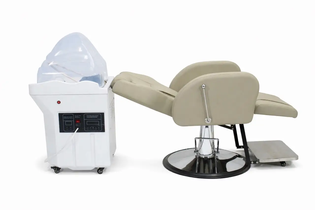A major advantage of this model is its perfect compatibility with headspa treatments. Because the backrest can be fully reclined, the chair integrates seamlessly with portable headspa units. This allows you to transform your workstation in just seconds from a hairdressing station into a headspa setup. Ideal for salons that want to work flexibly, combine treatments, and use their space efficiently without the need to install additional treatment beds.